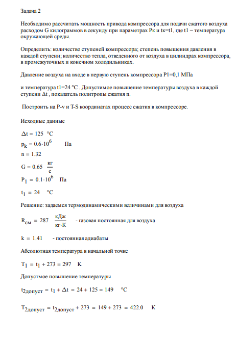Задача 2. Необходимо рассчитать мощность привода компрессора для подачи сжатого воздуха расходом G килограммов в секунду при параметрах Pк и tк=t1, где…