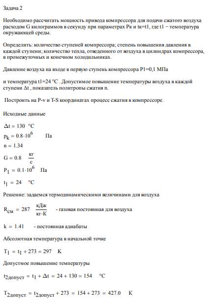 Задача 2. Необходимо рассчитать мощность привода компрессора для подачи сжатого воздуха расходом G килограммов в секунду при параметрах Pк и tк=t1, где…