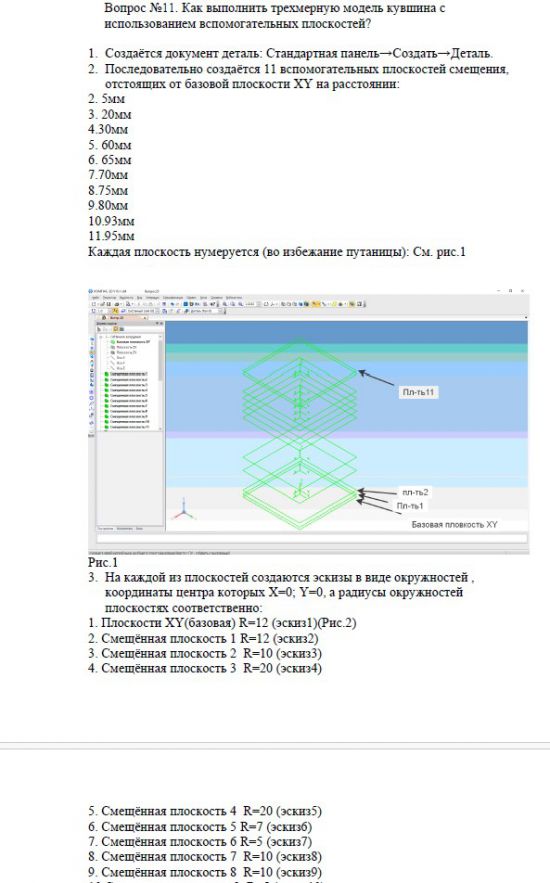 Вопрос №11. Как выполнить трехмерную модель кувшина с использованием вспомогательных плоскостей? Общий объем - 10 листов Формат - pdf <в…