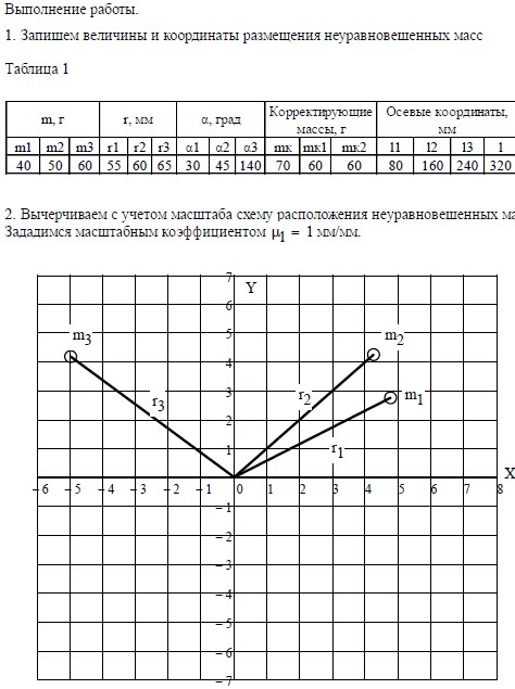 1. Производится расчет противовесов и их координат для уравновешивания ротора с известным расположением неуравновешенных масс.