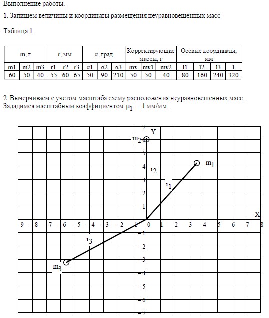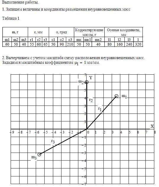 1. Производится расчет противовесов и их координат для уравновешивания ротора с известным расположением неуравновешенных масс.
