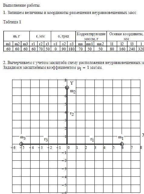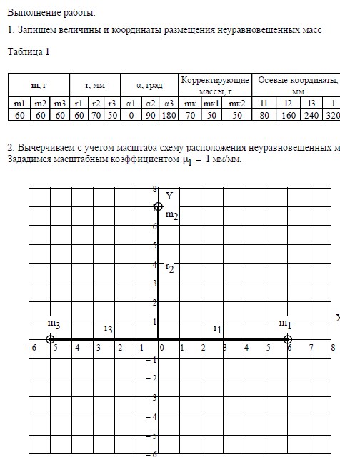 1. Производится расчет противовесов и их координат для уравновешивания ротора с известным расположением неуравновешенных масс.