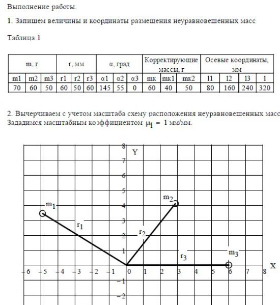 1. Производится расчет противовесов и их координат для уравновешивания ротора с известным расположением неуравновешенных масс.