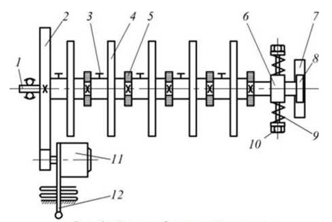 Ротор представляет собой вал 1, на котором располагаются пять алюминиевых дисков 4 на расстоянии 80 мм друг от друга. Крайние диски предназначены для установки корректирующих масс.