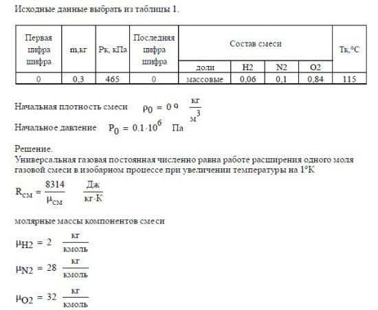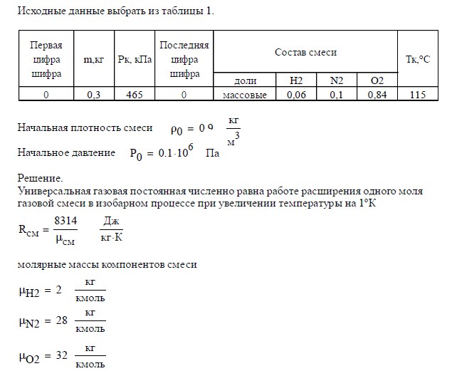 - контроль вычислений энергетических характеристик процесса выполнить по первому закону термодинамики.
