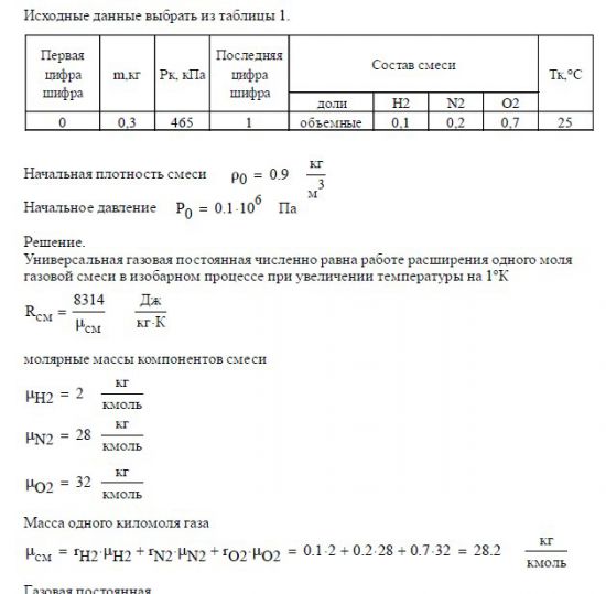 - контроль вычислений энергетических характеристик процесса выполнить по первому закону термодинамики.