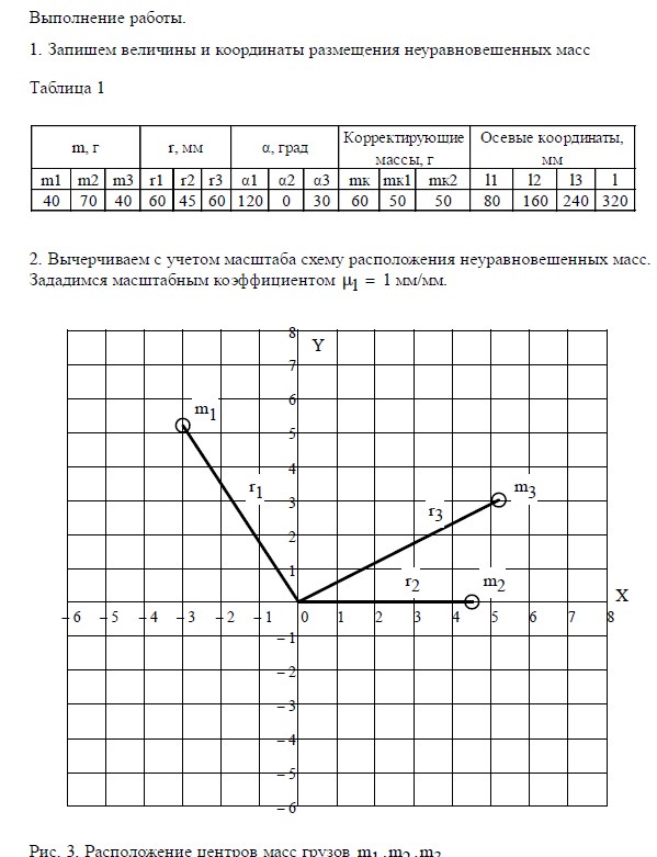 1. Производится расчет противовесов и их координат для уравновешивания ротора с известным расположением неуравновешенных масс.