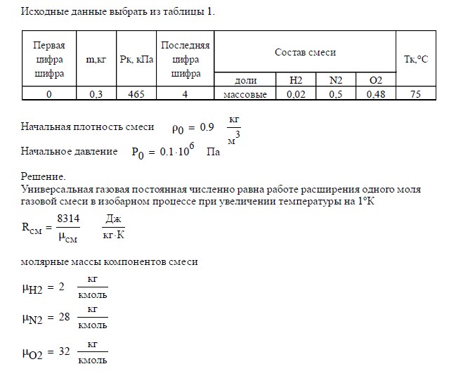 - контроль вычислений энергетических характеристик процесса выполнить по первому закону термодинамики.