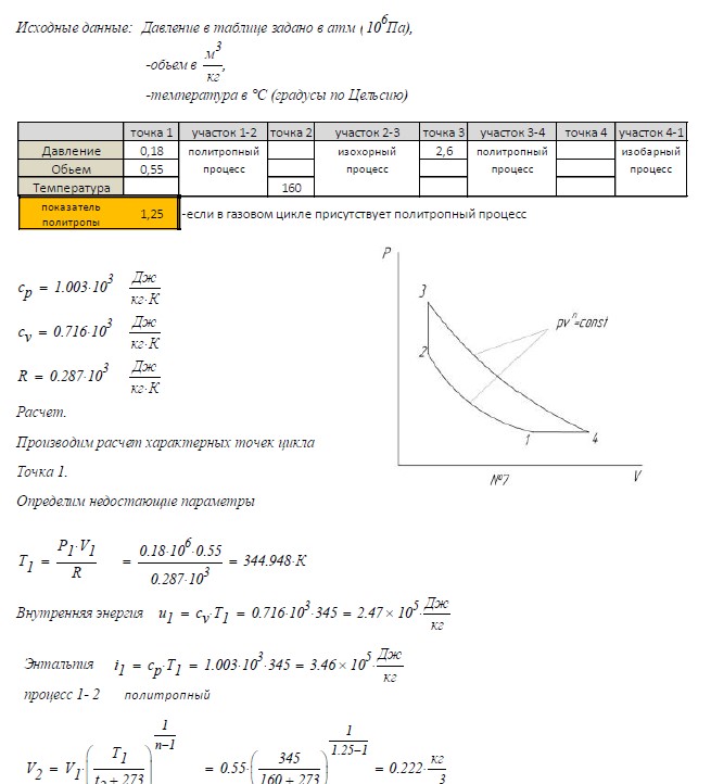 1. Определить параметры Р, V, Т для основных точек цикла, полученные данные занести в таблицу 4.1.
