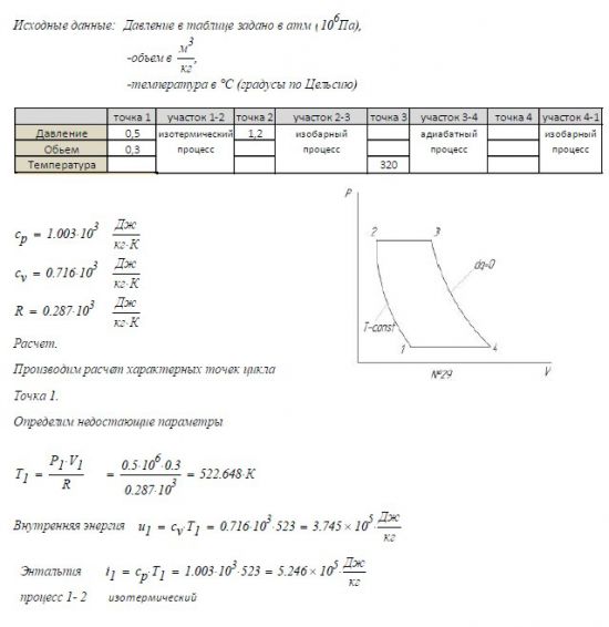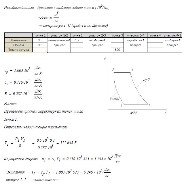 1. Определить параметры Р, V, Т для основных точек цикла, полученные данные занести в таблицу 4.1.
