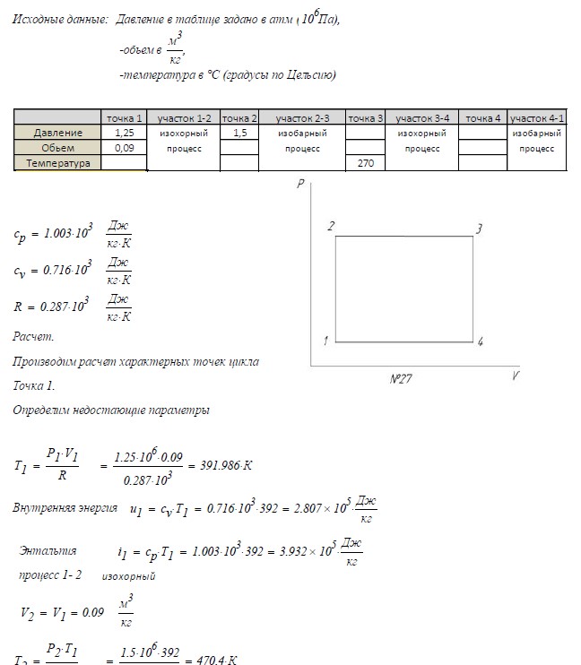 1. Определить параметры Р, V, Т для основных точек цикла, полученные данные занести в таблицу 4.1.
