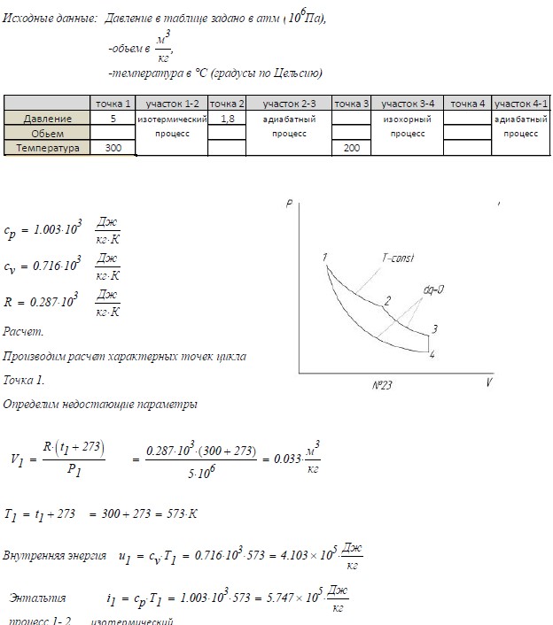 1. Определить параметры Р, V, Т для основных точек цикла, полученные данные занести в таблицу 4.1.