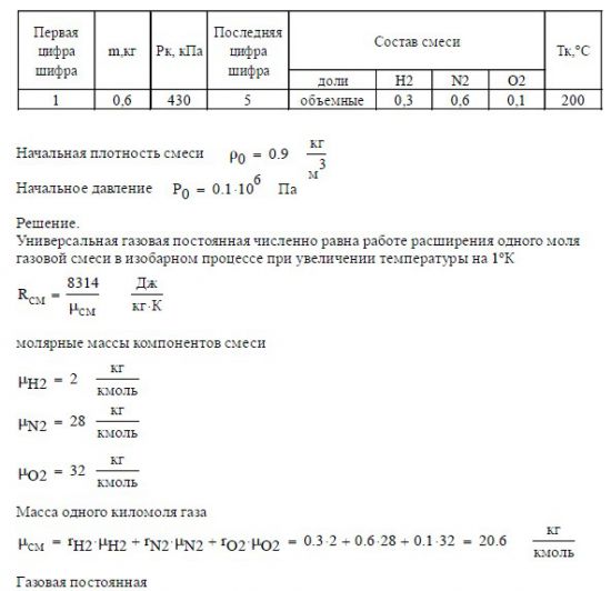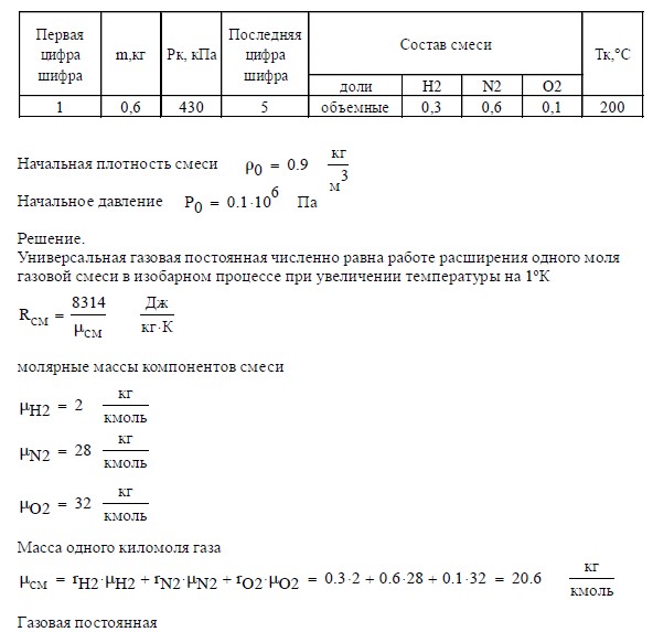 - контроль вычислений энергетических характеристик процесса выполнить по первому закону термодинамики.