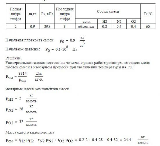 Газовая смесь массой m , имеющая начальную плотность 0,9 кг/м³, в ходе политропного процесса сжимается от давления 0,1 МПа до давления Рк. При этом ее температура достигает значения Тк.