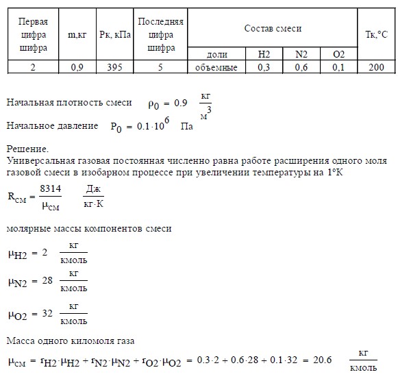 Газовая смесь массой m , имеющая начальную плотность 0,9 кг/м³, в ходе политропного процесса сжимается от давления 0,1 МПа до давления Рк. При этом ее температура достигает значения Тк.