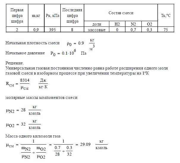 Газовая смесь массой m , имеющая начальную плотность 0,9 кг/м³, в ходе политропного процесса сжимается от давления 0,1 МПа до давления Рк. При этом ее температура достигает значения Тк.