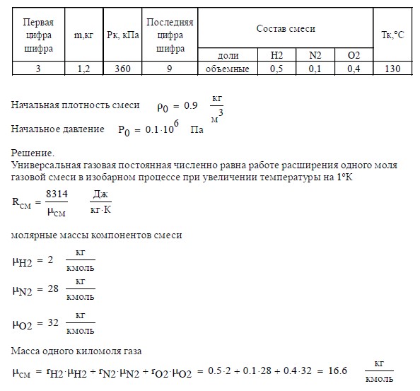 Газовая смесь массой m , имеющая начальную плотность 0,9 кг/м³, в ходе политропного процесса сжимается от давления 0,1 МПа до давления Рк. При этом ее температура достигает значения Тк.