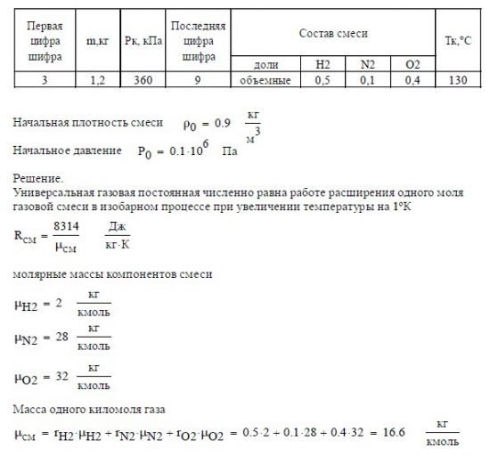- контроль вычислений энергетических характеристик процесса выполнить по первому закону термодинамики.