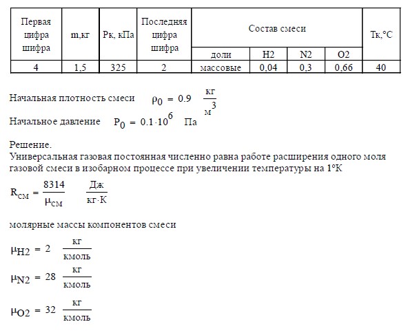 - контроль вычислений энергетических характеристик процесса выполнить по первому закону термодинамики.