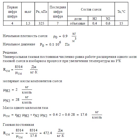 Газовая смесь массой m , имеющая начальную плотность 0,9 кг/м³, в ходе политропного процесса сжимается от давления 0,1 МПа до давления Рк. При этом ее температура достигает значения Тк.