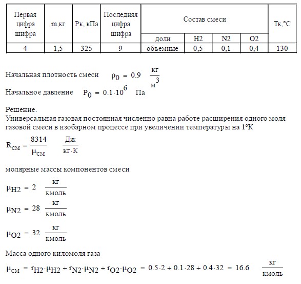 Газовая смесь массой m , имеющая начальную плотность 0,9 кг/м³, в ходе политропного процесса сжимается от давления 0,1 МПа до давления Рк. При этом ее температура достигает значения Тк.