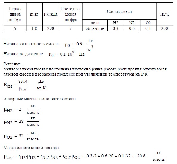 - контроль вычислений энергетических характеристик процесса выполнить по первому закону термодинамики.