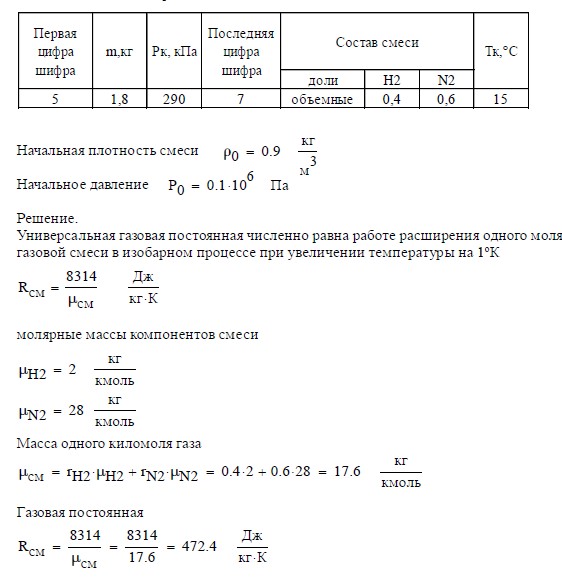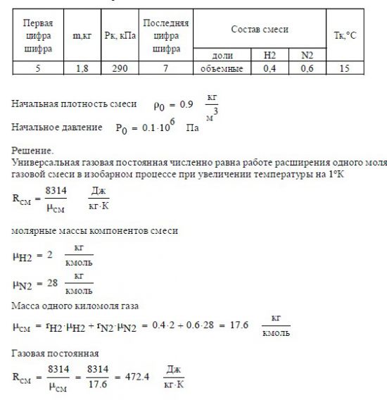 - контроль вычислений энергетических характеристик процесса выполнить по первому закону термодинамики.