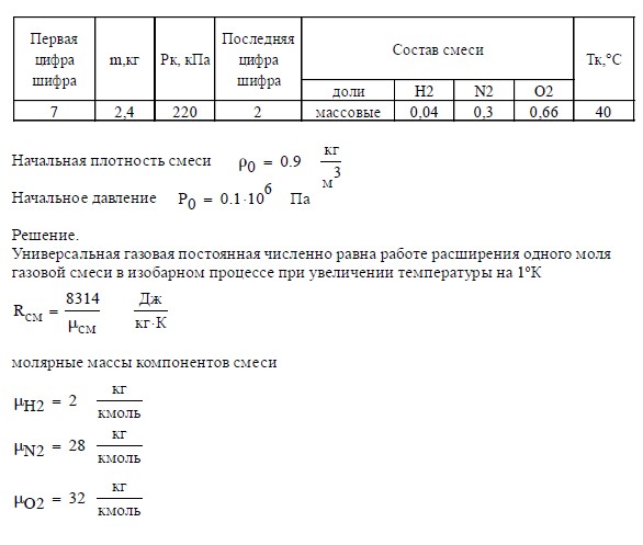 Газовая смесь массой m , имеющая начальную плотность 0,9 кг/м³, в ходе политропного процесса сжимается от давления 0,1 МПа до давления Рк. При этом ее температура достигает значения Тк.
