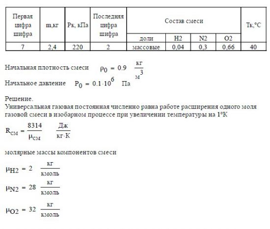 - контроль вычислений энергетических характеристик процесса выполнить по первому закону термодинамики.
