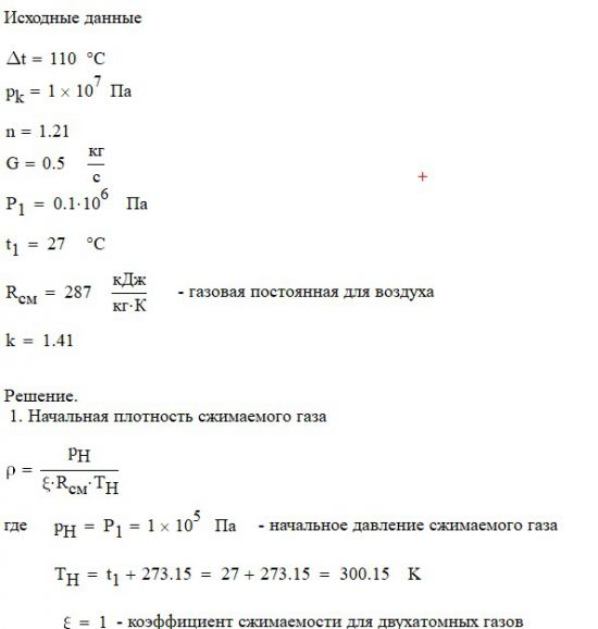 Произвести термодинамический расчет многоступенчатого поршневого компрессора, производящего G , кг в секунду сжатого до давления Рк воздуха, если предельно допустимое повышение температуры газа в каждой ступени Δt, а сжатие происходит с показателем политропы n.