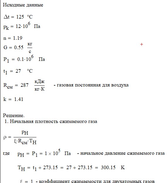 Произвести термодинамический расчет многоступенчатого поршневого компрессора, производящего G , кг в секунду сжатого до давления Рк воздуха, если предельно допустимое повышение температуры газа в каждой ступени Δt, а сжатие происходит с показателем политропы n.