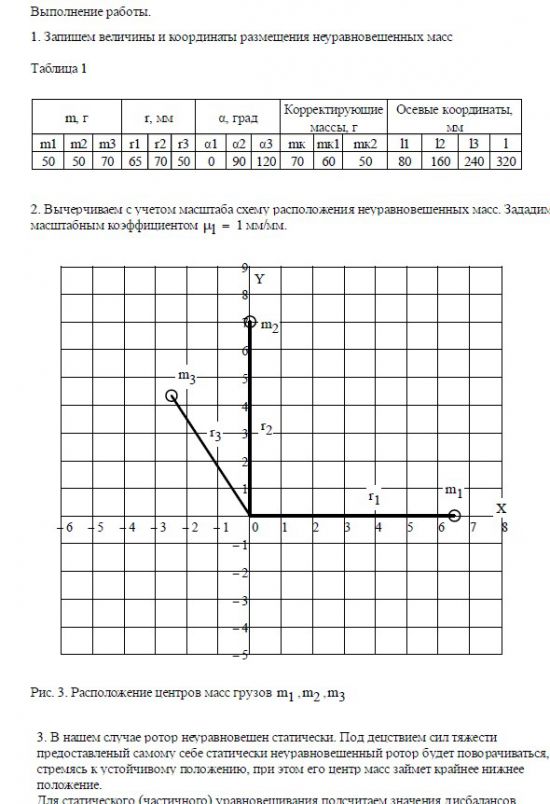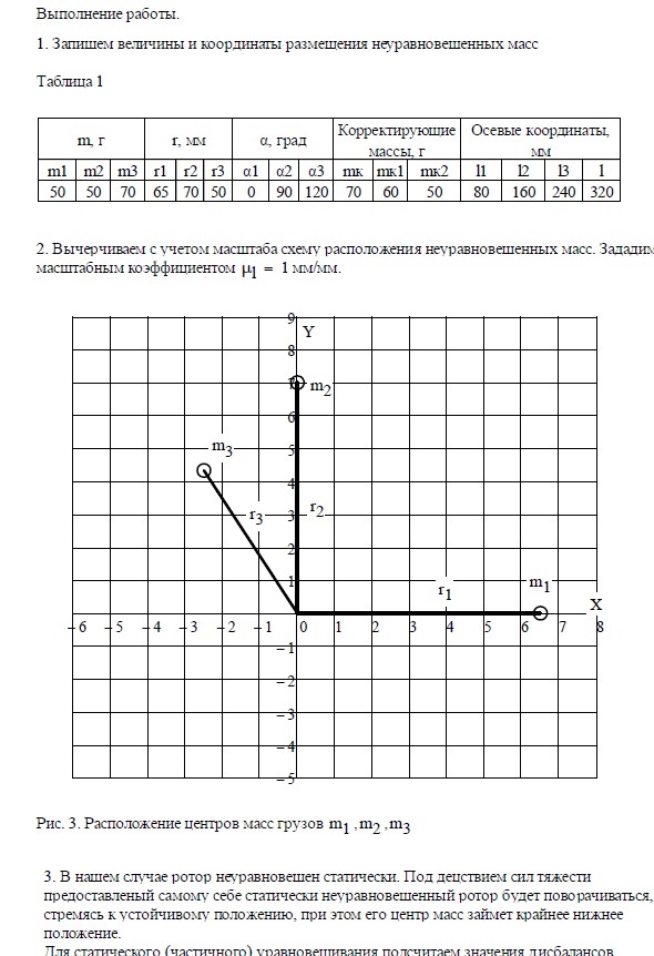 1. Производится расчет противовесов и их координат для уравновешивания ротора с известным расположением неуравновешенных масс.