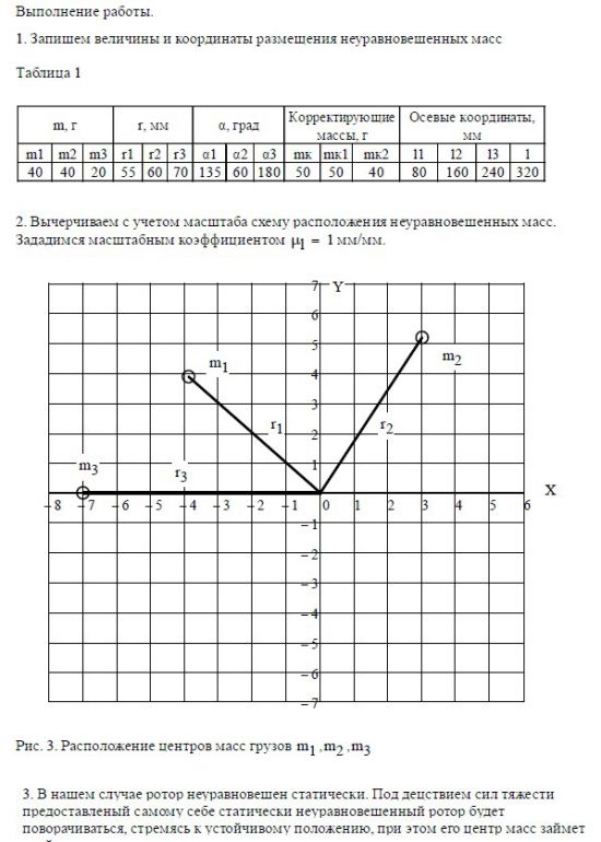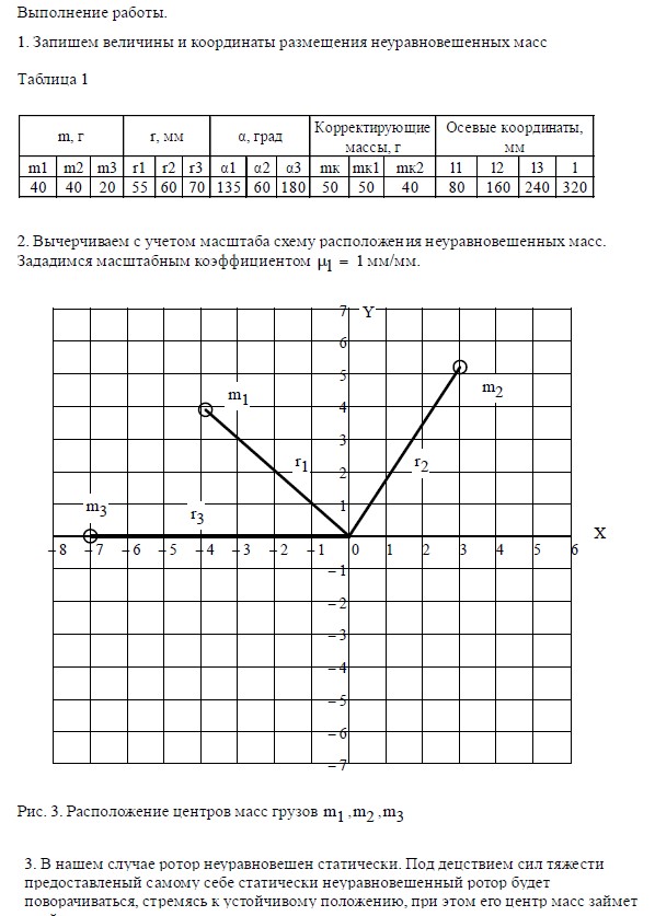 1. Производится расчет противовесов и их координат для уравновешивания ротора с известным расположением неуравновешенных масс.