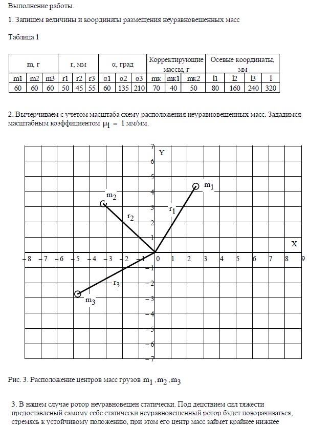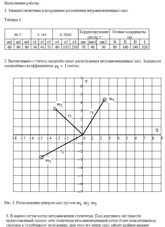 1. Производится расчет противовесов и их координат для уравновешивания ротора с известным расположением неуравновешенных масс.