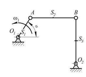 Известны размеры звеньев механизма: угол поворота кривошипа к горизонту a = ______, м, м. Угловая скорость кривошипа ______рад/с =const. Определить скорости точек А и В, угловую скорость шатуна АВ.