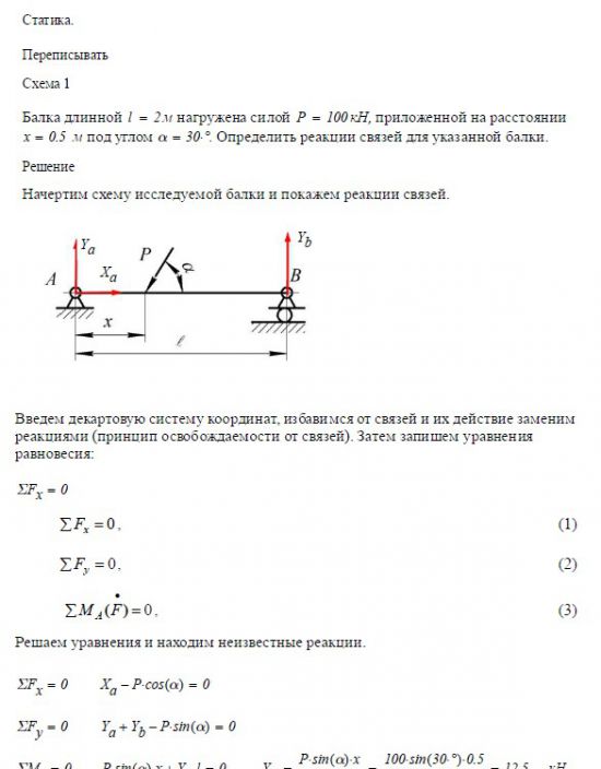 Задача 1. Статика. Схема 1 Балка длинной м нагружена силой P = 100 кН, приложенной на расстоянии x = _____ м под углом a =…