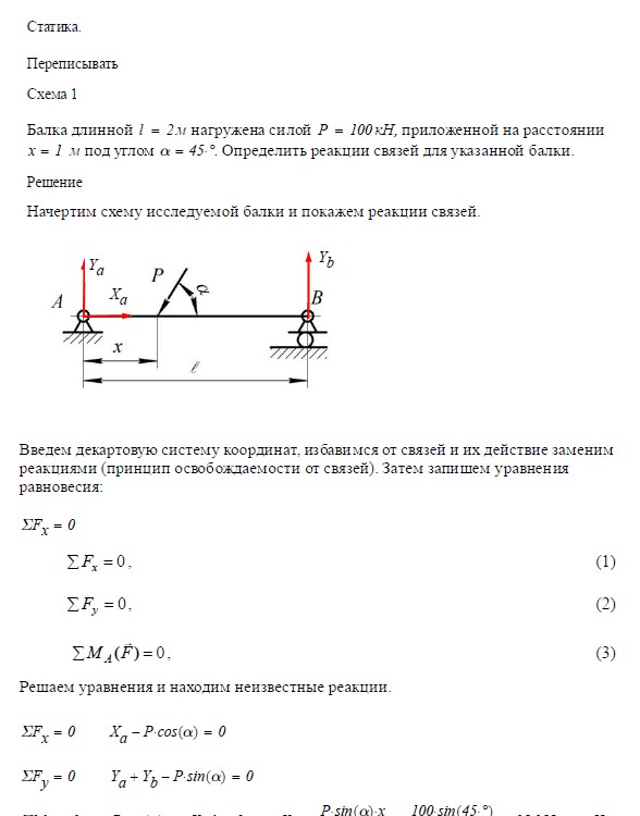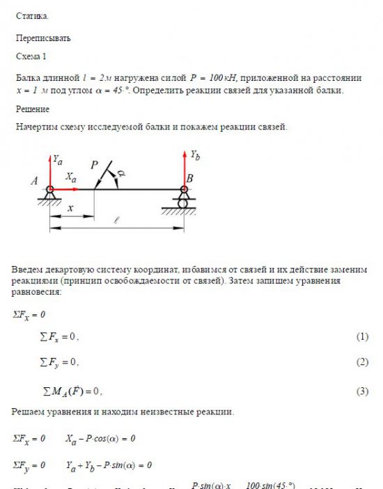 Задача 1. Статика. Схема 1 Балка длинной м нагружена силой P = 100 кН, приложенной на расстоянии x = _____ м под углом a =…