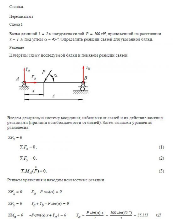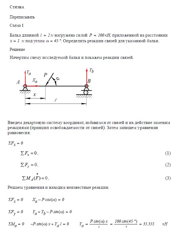 Задача 1. Статика. Схема 1 Балка длинной м нагружена силой P = 100 кН, приложенной на расстоянии x = _____ м под углом a =…