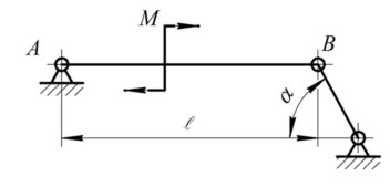 Балка длиной 2 м нагружена моментом М = _____ кН∙м, угол a = _____. Определить реакции связей для указанной балки.