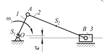 Известны размеры звеньев механизма: угол поворота кривошипа к горизонту a = ____, loa=0.2 м, lab=0.5 м, e = 0,1 м. Угловая скорость кривошипа _____рад/с =const. Определить скорости точек А и В, угловую скорость шатуна АВ.