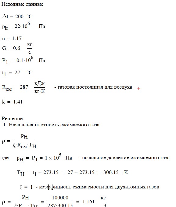 Произвести термодинамический расчет многоступенчатого поршневого компрессора, производящего G , кг в секунду сжатого до давления Рк воздуха, если предельно допустимое повышение температуры газа в каждой ступени Δt, а сжатие происходит с показателем политропы n.