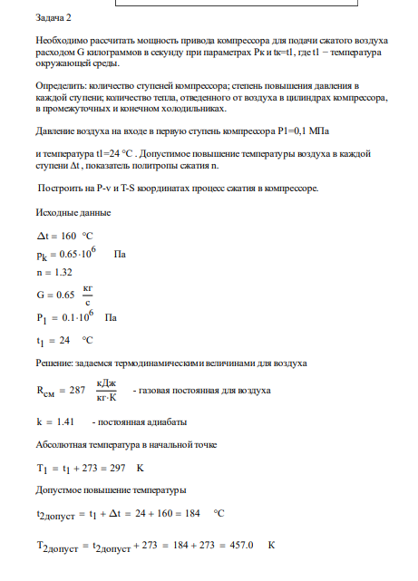 Задача 2. Необходимо рассчитать мощность привода компрессора для подачи сжатого воздуха расходом G килограммов в секунду при параметрах Pк и tк=t1, где…