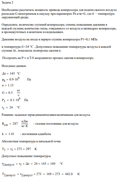 Задача 2. Необходимо рассчитать мощность привода компрессора для подачи сжатого воздуха расходом G килограммов в секунду при параметрах Pк и tк=t1, где…