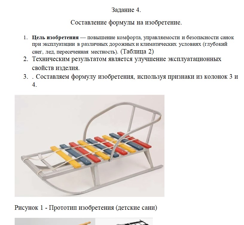 Составить формулу изобретения для усовершенствованного объекта, взяв за прототип технический объект (устройство) из задания 3 по своему варианту - Санки