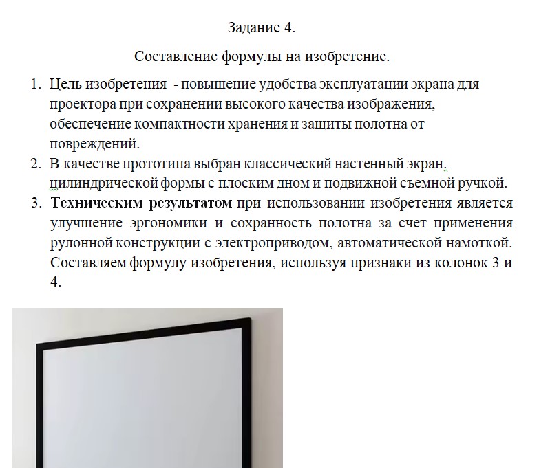 Составить формулу изобретения для усовершенствованного объекта, взяв за прототип технический объект (устройство) из задания 3 по своему варианту - Экран
