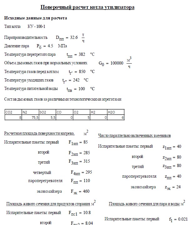 Расчет котла - утилизатора Определить количества теплоты, воспринимаемой поверхностями нагрева котла-утилизатора при заданных параметрах и сравнение расчетной…