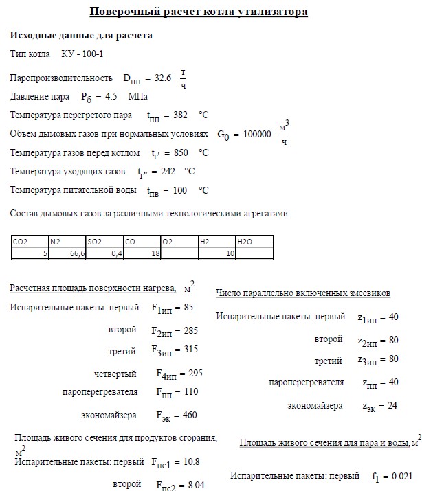 Расчет котла - утилизатора Определить количества теплоты, воспринимаемой поверхностями нагрева котла-утилизатора при заданных параметрах и сравнение расчетной…
