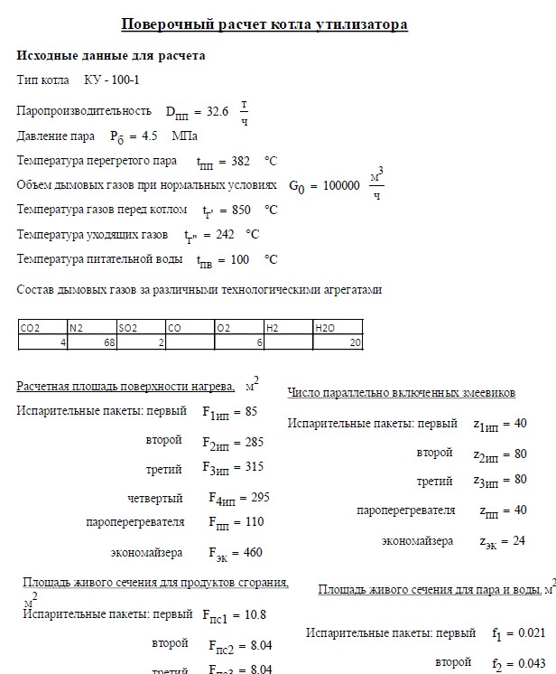 Расчет котла - утилизатора Определить количества теплоты, воспринимаемой поверхностями нагрева котла-утилизатора при заданных параметрах и сравнение расчетной…