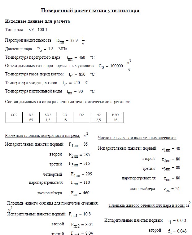 Расчет котла - утилизатора Определить количества теплоты, воспринимаемой поверхностями нагрева котла-утилизатора при заданных параметрах и сравнение расчетной…