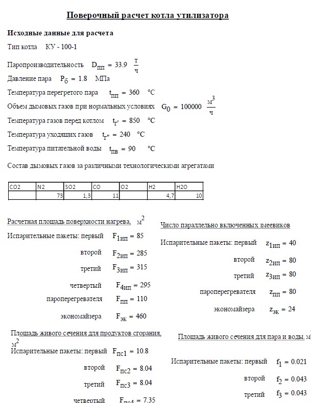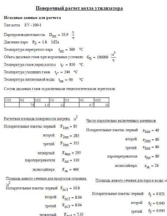 Расчет котла - утилизатора